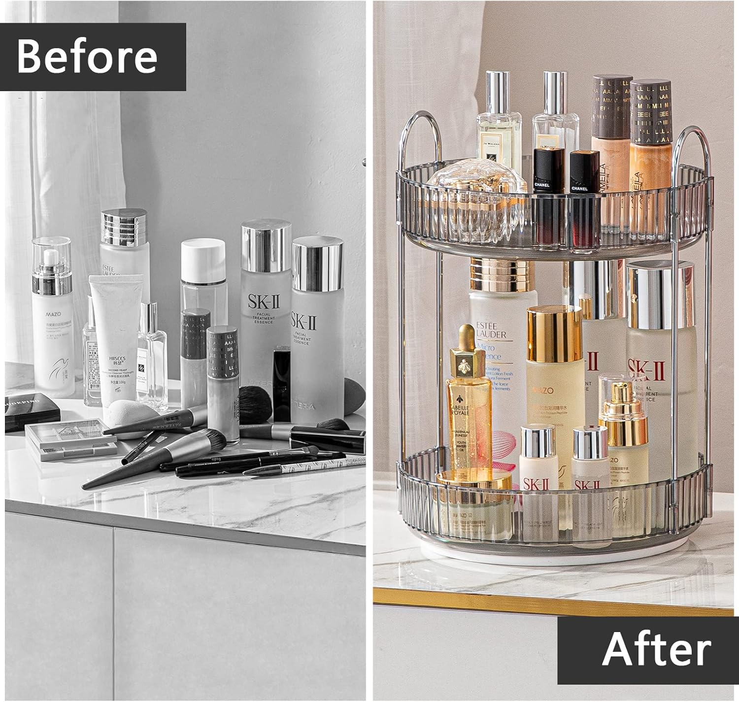 - Large Capacity: This organizer 2 tier measures 9''D x 9''W x 12.5''H, 3 tier measures 9''D x 9''W x 18.5''H (please measure your countertop space before purchasing). Great for organizing skincare, makeup, perfume or anything you like, save space and increase storage capacity