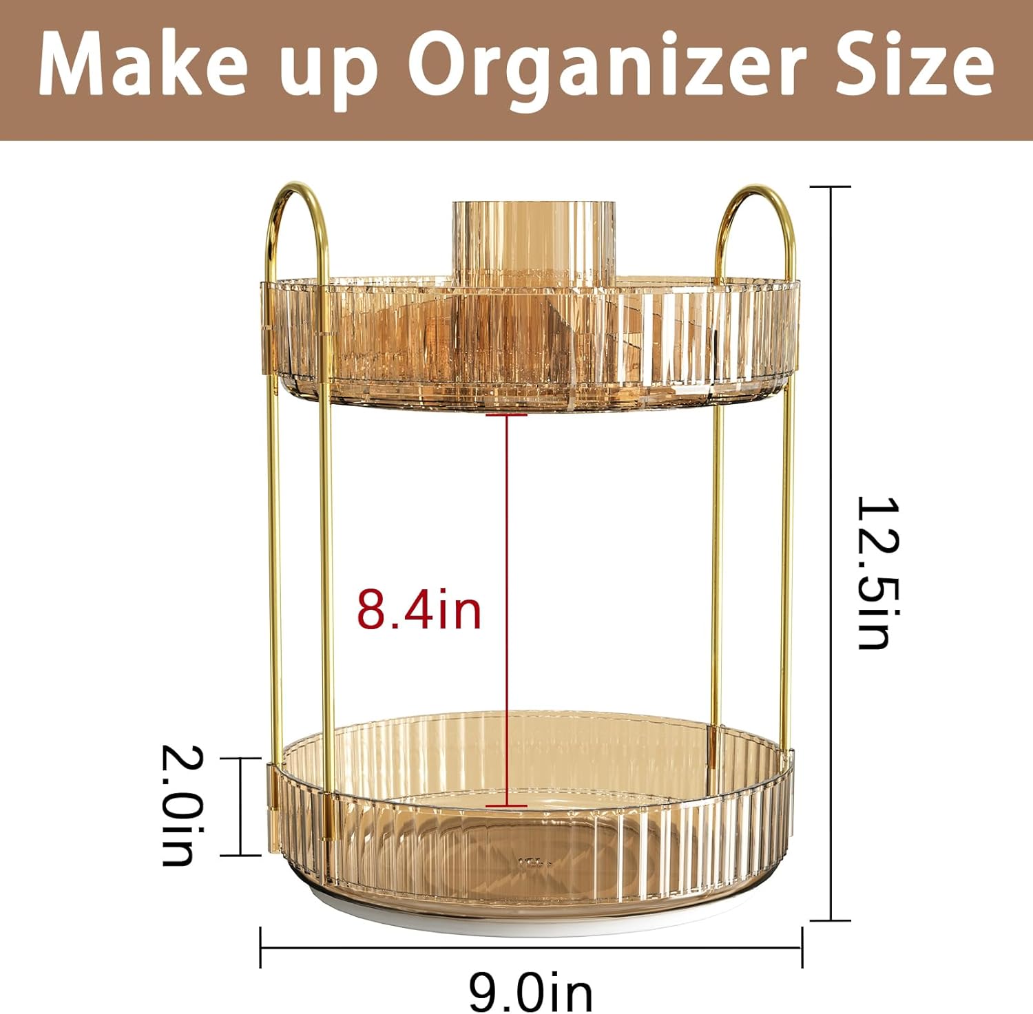 Rotating Makeup Organizer for Vanity, High-Capacity Skincare Clear Make Up Storage Perfume Organizers Cosmetic Dresser Organizer Countertop 360 Spinning (Gold, New-2 Tier)
