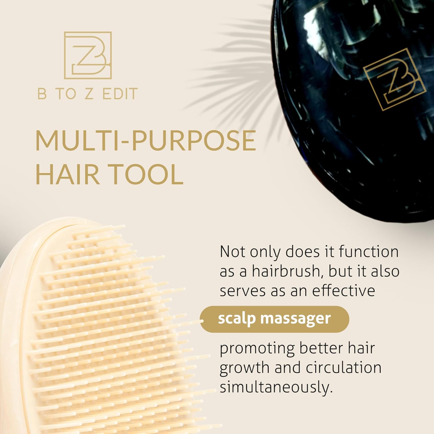 - Mini Detangler Brush: Our mini brush is designed to detangle hair effortlessly, reducing breakage and split ends. Our detangling brush features firm, non 'ball-tip', three-tiered bristles. The bristles are long enough to stimulate scalp circulation, fostering healthy hair growth. Its ergonomic shape ensures a secure grip during use.